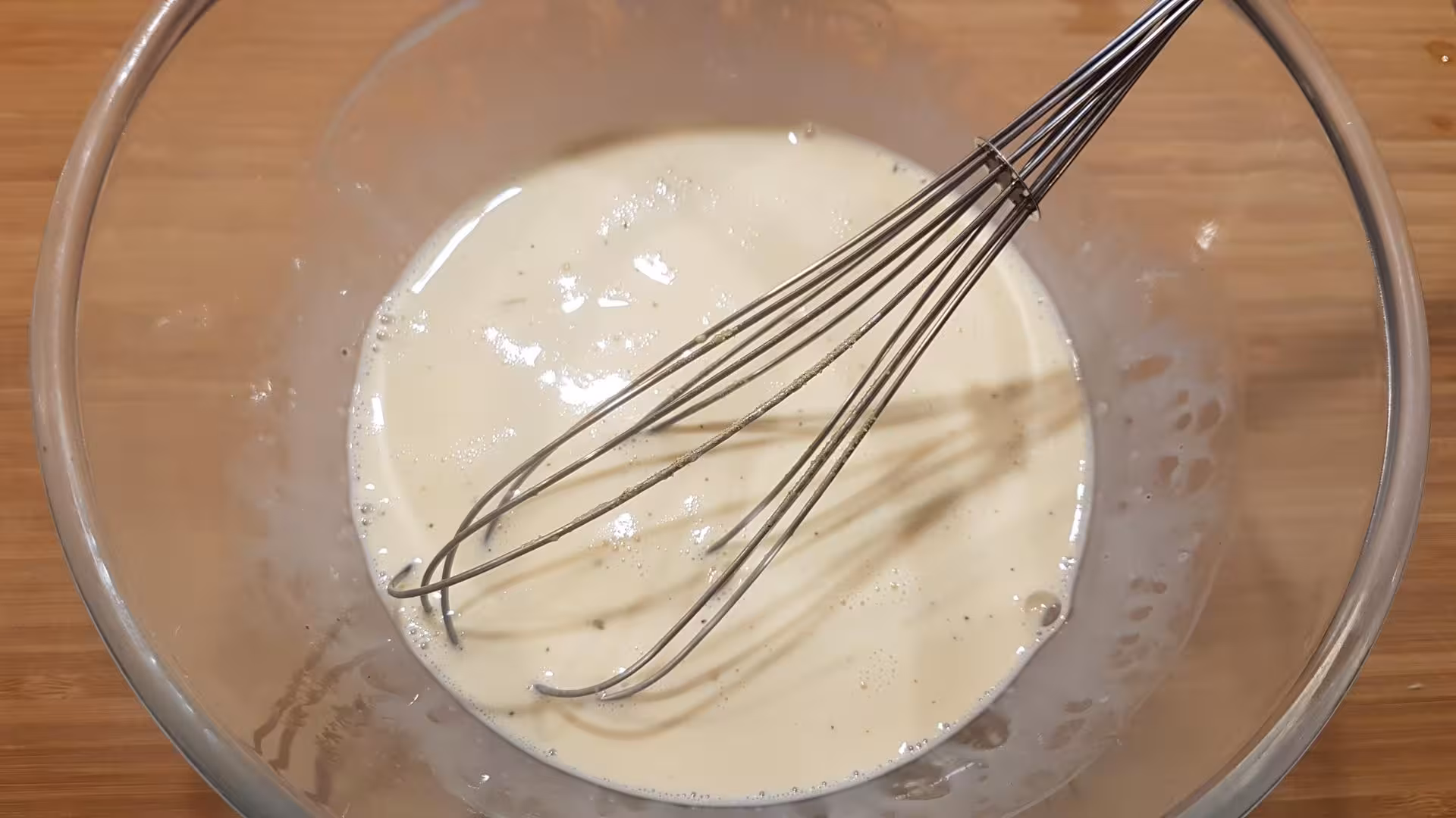- Battre les œufs. Ajouter la crème liquide, le bouillon de volaille, du poivre et de l’ail. Mélanger.